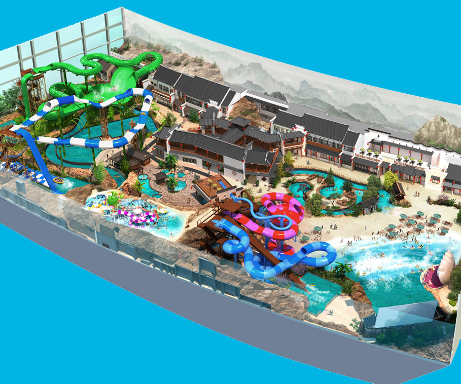 国内首个江南水乡主题室内水乐园,全天候水乡氛围水世界,将本土的江南水乡文化元素完美融入水世界的空间设计和设备创新设计。